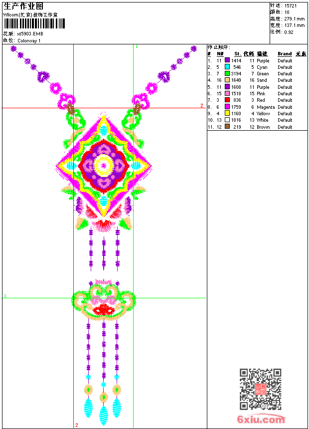 领子 点此上传花版兑乐绣币/现金 emb花版参数: 大小:96.00 KB / 尺寸:137*279[毫米] / 针数:15721针 / 线色:10 / 格式:emb / 版本:9 版带文件需绣花软件方可打开,可配色打印导出各种格式或直接上机绣。如无绣花软件可下载1:1模拟效果图。 PNG图片信息:大小:0.2(MB) /图宽*高:519x1056(像素) emb下载 1:1图下载 关闭 相似花版: 条码 中国风牡丹 孔雀尾巴 中国风唐装吉祥 中国风唐装 简单大方的 线条 荷花 大花朵 简单大花朵 靓花 中国风扇子靓花 靓花 孔雀尾巴 骷髅 佛绣 佛绣 佛绣 骷髅 中国古典窗户 上一个花样:抽象线条 下一个花样:条码