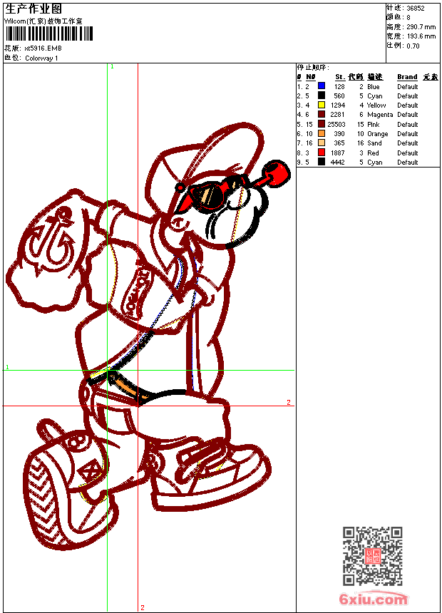 卡通大力水手 点此上传花版兑乐绣币/现金 emb花版参数: 大小:246.00 KB / 尺寸:194*291[毫米] / 针数:36852针 / 线色:8 / 格式:emb / 版本:9 版带文件需绣花软件方可打开,可配色打印导出各种格式或直接上机绣。如无绣花软件可下载1:1模拟效果图。 PNG图片信息:大小:0.5(MB) /图宽*高:733x1100(像素) emb下载 1:1图下载 关闭 相似花版: 卡通大力水手 卡通超级玛丽 卡通小男孩 大力水手卡通 骷髅 阿迪达斯 老虎头 靓大花朵 中国风花 鸟语花香 靓大花朵 抽象线条 领子 条码 中国风牡丹 孔雀尾巴 中国风唐装吉祥 中国风唐装 简单大方的 线条 上一个花样:卡通蜡笔小新 下一个花样:卡通大力水手