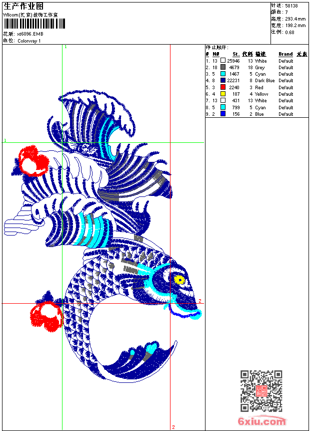 中国风鲤鱼 点此上传花版兑乐绣币/现金 emb花版参数: 大小:291.00 KB / 尺寸:198*293[毫米] / 针数:58138针 / 线色:7 / 格式:emb / 版本:9 版带文件需绣花软件方可打开,可配色打印导出各种格式或直接上机绣。如无绣花软件可下载1:1模拟效果图。 PNG图片信息:大小:0.9(MB) /图宽*高:750x1110(像素) emb下载 1:1图下载 关闭 相似花版: 徽章标志企鹅 徽章标志码 徽章标志码头 猫头鹰 十字绣花朵 领子 三角形复杂花朵 林子 皇冠 channel 蝴蝶 靓花 靓花 靓花 老鹰 亮片蜜蜂大黄蜂 卡通机器人 皇冠标志狮子男装 壁虎蜥蜴变色龙 小鸟跟蝴蝶 上一个花样:老鹰 下一个花样:徽章标志企鹅