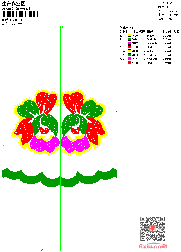 对称的花朵 点此上传花版兑乐绣币/现金 emb花版参数: 大小:157.50 KB / 尺寸:290*246[毫米] / 针数:34921针 / 线色:4 / 格式:emb / 版本:9 版带文件需绣花软件方可打开,可配色打印导出各种格式或直接上机绣。如无绣花软件可下载1:1模拟效果图。 PNG图片信息:大小:0.9(MB) /图宽*高:1098x930(像素) emb下载 1:1图下载 关闭 相似花版: 圆圈风景中国古典松树 衣领 靓水草 靓水草花 耐克标志 靓垂柳 小鸟 恐龙 靓花朵 范思哲 毛巾绣小狗 老鹰和鸟 火山 排骨鱼 靓花 靓花 被撑的水溶 网布条码 复杂的裙子 徽章标志男装 上一个花样:徽章标志男装 下一个花样:圆圈风景中国古典松树