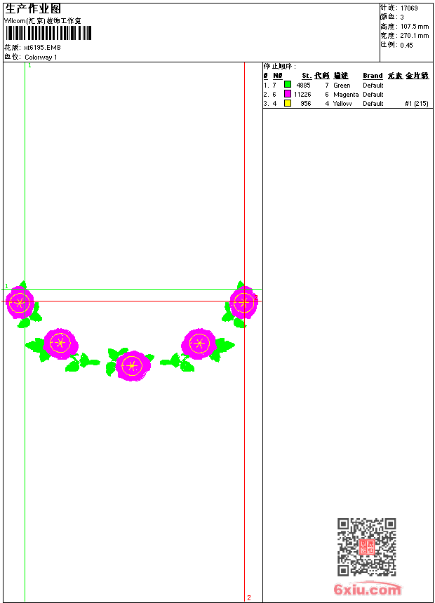 衣领 点此上传花版兑乐绣币/现金 emb花版参数: 大小:107.00 KB / 尺寸:270*107[毫米] / 针数:17069针 / 线色:3 / 格式:emb / 版本:9 版带文件需绣花软件方可打开,可配色打印导出各种格式或直接上机绣。如无绣花软件可下载1:1模拟效果图。 PNG图片信息:大小:0.2(MB) /图宽*高:1022x407(像素) emb下载 1:1图下载 关闭 相似花版: 徽章标志男装 对称的花朵 圆圈风景中国古典松树 衣领 靓水草 靓水草花 耐克标志 靓垂柳 小鸟 恐龙 靓花朵 范思哲 毛巾绣小狗 老鹰和鸟 火山 排骨鱼 靓花 靓花 被撑的水溶 网布条码 上一个花样:靓花 下一个花样:徽章标志男装