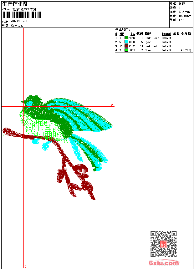 亮片小鸟 点此上传花版兑乐绣币/现金 emb花版参数: 大小:58.50 KB / 尺寸:103*98[毫米] / 针数:6685针 / 线色:4 / 格式:emb / 版本:9 版带文件需绣花软件方可打开,可配色打印导出各种格式或直接上机绣。如无绣花软件可下载1:1模拟效果图。 PNG图片信息:大小:0.1(MB) /图宽*高:390x370(像素) emb下载 1:1图下载 关闭 相似花版: 简单对称花 简单花 靓鸟中国风光 靓花 对阵简单花 靓玫瑰花 仙鹤 三个叶子的花 领子 靓花 蝴蝶 玫瑰花 像蜻蜓翅膀的东东 梅花鹿 靓花 简单花 衣领 亮片花 亮片花 亮片花朵 上一个花样:龙 下一个花样:简单对称花