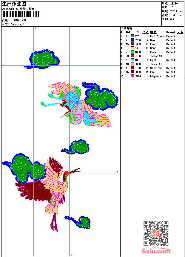 仙鹤 点此上传花版兑乐绣币/现金 emb花版参数: 大小:173.00 KB / 尺寸:185*292[毫米] / 针数:28260针 / 线色:10 / 格式:emb / 版本:9 版带文件需绣花软件方可打开,可配色打印导出各种格式或直接上机绣。如无绣花软件可下载1:1模拟效果图。 PNG图片信息:大小:0.5(MB) /图宽*高:700x1105(像素) emb下载 1:1图下载 关闭 相似花版: 仙鹤 凤凰 中国风 中国风靓花鲤鱼 佛像 靓花牡丹 靓花 靓花 鲤鱼弹琴 美人鱼 狮子梅花鹿和狼 小鸟 小鸟 特种绣小鸟 小狗宠物犬 小鸟 豹子头老虎 带字母的花朵 皇冠鸟徽章标志男装 带字母的花朵 上一个花样:仙鹤 下一个花样:仙鹤