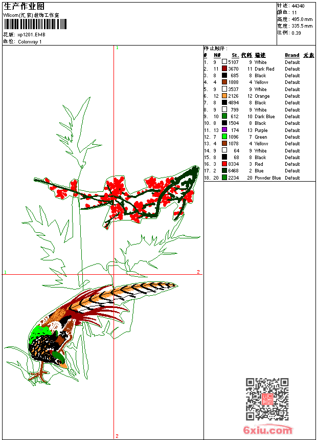梅花 锦鸡 鸟 点此上传花版兑乐绣币/现金 emb花版参数: 大小:269.00 KB / 尺寸:336*495[毫米] / 针数:44340针 / 线色:11 / 格式:emb / 版本:9 版带文件需绣花软件方可打开,可配色打印导出各种格式或直接上机绣。如无绣花软件可下载1:1模拟效果图。 PNG图片信息:大小:0.8(MB) /图宽*高:1270x1873(像素) emb下载 1:1图下载 关闭 相似花版: 梅花 龙 下山老虎 狗 皇冠 章标 豹头 小狗 鸟 鸟 仙鹤 珠片真维斯 蜜蜂 皇冠 老虎头 徽章标志飞机 徽章标志 徽章标志 徽章标志 卡通牛 卡通牛 卡通牛 卡通牛 上一个花样:荷花鲤鱼 下一个花样:梅花