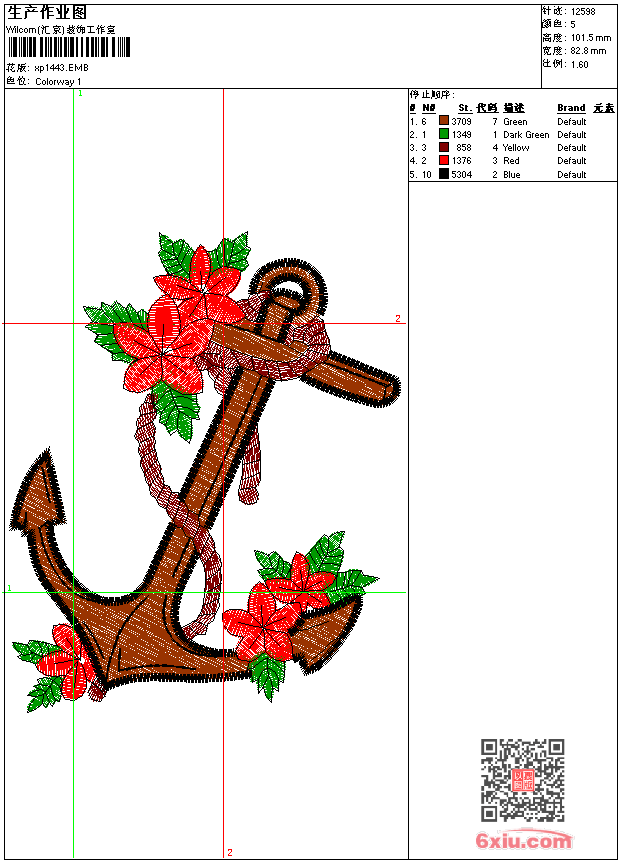 锚 章标 点此上传花版兑乐绣币/现金 emb花版参数: 大小:93.00 KB / 尺寸:83*101[毫米] / 针数:12598针 / 线色:5 / 格式:emb / 版本:9 版带文件需绣花软件方可打开,可配色打印导出各种格式或直接上机绣。如无绣花软件可下载1:1模拟效果图。 PNG图片信息:大小:0.1(MB) /图宽*高:313x384(像素) emb下载 1:1图下载 关闭 相似花版: 心形 豹子头 豹子 骷髅 骷髅 外星人 徽章标志 豹 心形 狗 心形 小鸟 钻石 章仔 卡通 螃蟹 徽章标志 领花 王冠 徽章标志 徽章标志 鸟 花朵 上一个花样:小鸟 下一个花样:心形