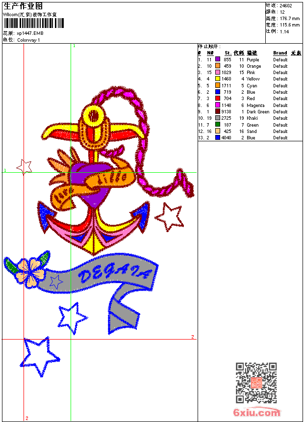 锚 章标 点此上传花版兑乐绣币/现金 emb花版参数: 大小:152.00 KB / 尺寸:116*177[毫米] / 针数:24602针 / 线色:12 / 格式:emb / 版本:9 版带文件需绣花软件方可打开,可配色打印导出各种格式或直接上机绣。如无绣花软件可下载1:1模拟效果图。 PNG图片信息:大小:0.2(MB) /图宽*高:438x669(像素) emb下载 1:1图下载 关闭 相似花版: 心形 王冠 徽章标志 小鸟 锚 章标 心形 豹子头 豹子 骷髅 骷髅 外星人 徽章标志 豹 心形 狗 心形 小鸟 钻石 章仔 卡通 螃蟹 徽章标志 领花 上一个花样:靓花 下一个花样:心形