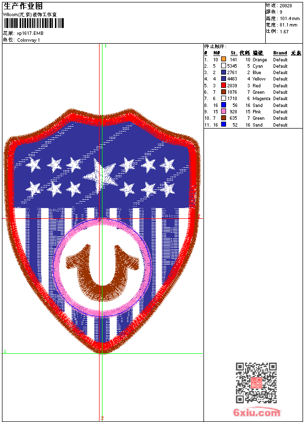 徽章标志 点此上传花版兑乐绣币/现金 emb花版参数: 大小:81.00 KB / 尺寸:81*101[毫米] / 针数:20028针 / 线色:9 / 格式:emb / 版本:9 版带文件需绣花软件方可打开,可配色打印导出各种格式或直接上机绣。如无绣花软件可下载1:1模拟效果图。 PNG图片信息:大小:0.2(MB) /图宽*高:307x384(像素) emb下载 1:1图下载 关闭 相似花版: 小鸟 徽章标志 松鼠 徽章标志 徽章标志 毛巾绣鳄鱼 毛巾绣狗 徽章标志 徽章标志 狼头 徽章标志 徽章标志 徽章标志 徽章标志 polo 男 徽章标志 徽章标志 polo 男 徽章标志 徽章标志 鹰 徽章标志 鹰 骷髅 上一个花样:徽章标志 毛巾绣 下一个花样:小鸟