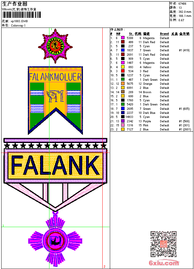 徽章标志 点此上传花版兑乐绣币/现金 emb花版参数: 大小:466.50 KB / 尺寸:166*382[毫米] / 针数:67406针 / 线色:13 / 格式:emb / 版本:9 版带文件需绣花软件方可打开,可配色打印导出各种格式或直接上机绣。如无绣花软件可下载1:1模拟效果图。 PNG图片信息:大小:0.5(MB) /图宽*高:629x1446(像素) emb下载 1:1图下载 关闭 相似花版: 徽章标志 徽章标志 保罗 polo 男 骑马 徽章标志 徽章标志 狗 珠片 珠片 猪 狗 豹子 保罗 polo 男 骑马 狗王冠 靓花 乌云 徽章标志 狗狗 珠片 王冠 老虎 山羊 王冠 豹头 徽章标志 星座 上一个花样:马 下一个花样:徽章标志