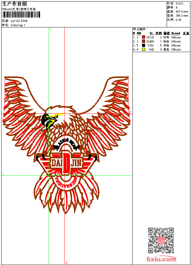 鹰 点此上传花版兑乐绣币/现金 emb花版参数: 大小:254.00 KB / 尺寸:396*427[毫米] / 针数:51331针 / 线色:4 / 格式:emb / 版本:9 版带文件需绣花软件方可打开,可配色打印导出各种格式或直接上机绣。如无绣花软件可下载1:1模拟效果图。 PNG图片信息:大小:1.8(MB) /图宽*高:1499x1616(像素) emb下载 1:1图下载 关闭 相似花版: 恐龙 靓花 老虎 靓花 靓花 靓花 蝴蝶 靓花 靓花 猫头 徽章标志 鸟 鸟 鸟 鸟 鸟 鸟 徽章标志 徽章标志 蜜蜂 徽章标志 蜜蜂 上一个花样:虎头 下一个花样:恐龙