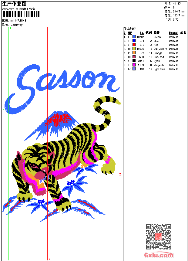 老虎 点此上传花版兑乐绣币/现金 emb花版参数: 大小:210.00 KB / 尺寸:184*245[毫米] / 针数:44195针 / 线色:9 / 格式:emb / 版本:9 版带文件需绣花软件方可打开,可配色打印导出各种格式或直接上机绣。如无绣花软件可下载1:1模拟效果图。 PNG图片信息:大小:0.6(MB) /图宽*高:695x925(像素) emb下载 1:1图下载 关闭 相似花版: 龙 龙 公鸡 公鸡 龙 猫头鹰 龙 龙 龙 龙 龙 靓花 靓花 孔雀 靓花 靓花 鸟 豹头 虎头 鸟 上一个花样:麒麟 中国风 下一个花样:龙