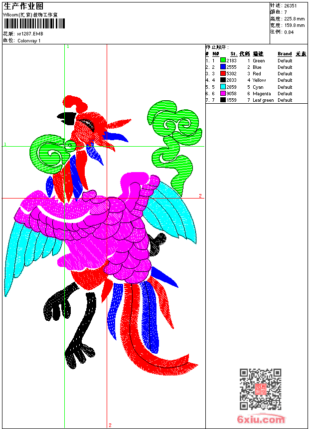 凤凰 点此上传花版兑乐绣币/现金 emb花版参数: 大小:141.00 KB / 尺寸:160*226[毫米] / 针数:26351针 / 线色:7 / 格式:emb / 版本:9 版带文件需绣花软件方可打开,可配色打印导出各种格式或直接上机绣。如无绣花软件可下载1:1模拟效果图。 PNG图片信息:大小:0.6(MB) /图宽*高:605x855(像素) emb下载 1:1图下载 关闭 相似花版: 靓花 凤凰 龙 荷花 牛 恐龙 靓花 条码 靓花 荷花 金鱼 鸟 荷花 童子 鲤鱼 中国风 美女头像 靓花 芭蕉叶 靓花 靓花 靓花 靓花 凤凰 上一个花样:龙凤 下一个花样:靓花