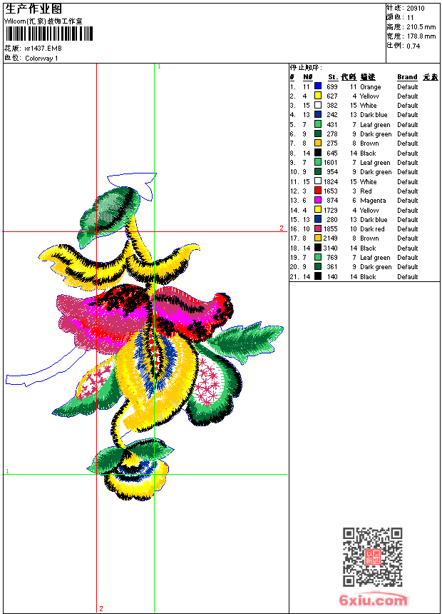 靓花 点此上传花版兑乐绣币/现金 emb花版参数: 大小:145.50 KB / 尺寸:179*210[毫米] / 针数:20910针 / 线色:11 / 格式:emb / 版本:9 版带文件需绣花软件方可打开,可配色打印导出各种格式或直接上机绣。如无绣花软件可下载1:1模拟效果图。 PNG图片信息:大小:0.5(MB) /图宽*高:677x797(像素) emb下载 1:1图下载 关闭 相似花版: 条裙 龙 豹 豹 靓花 靓花 鸟 鸟 龙 鹤 鸟 中国古代马车 凤凰 孔雀 荷花 荷花 鸟 狮子 靓花 龙 上一个花样:靓花 下一个花样:条裙