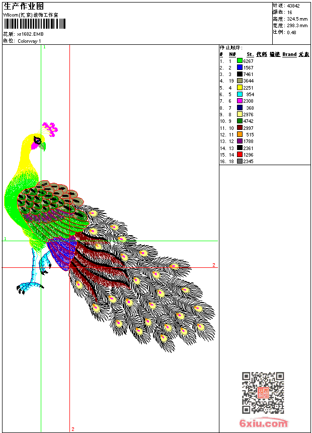 孔雀 点此上传花版兑乐绣币/现金 emb花版参数: 大小:292.00 KB / 尺寸:298*324[毫米] / 针数:43842针 / 线色:16 / 格式:emb / 版本:9 版带文件需绣花软件方可打开,可配色打印导出各种格式或直接上机绣。如无绣花软件可下载1:1模拟效果图。 PNG图片信息:大小:1.1(MB) /图宽*高:1129x1228(像素) emb下载 1:1图下载 关闭 相似花版: 豹 龙 龙 龙 龙 孔雀 蝴蝶 龙 龙 老虎 龙 龙 龙 鸟 凤凰 靓花 鸟 龙 龙 龙 上一个花样:脸谱 张飞 人物 下一个花样:豹