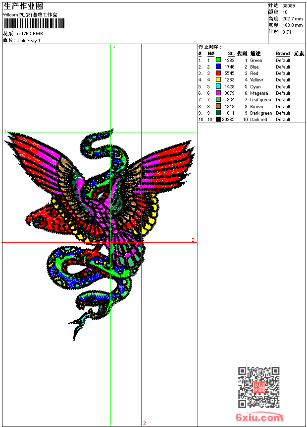 鹰 蛇 点此上传花版兑乐绣币/现金 emb花版参数: 大小:188.00 KB / 尺寸:183*203[毫米] / 针数:38089针 / 线色:10 / 格式:emb / 版本:9 版带文件需绣花软件方可打开,可配色打印导出各种格式或直接上机绣。如无绣花软件可下载1:1模拟效果图。 PNG图片信息:大小:0.6(MB) /图宽*高:693x767(像素) emb下载 1:1图下载 关闭 相似花版: 鹰 靓花 鹰 荷花 蛇 鸳鸯 老虎 鸟 龙 龙 靓花 鲤鱼 龙 龙 鲤鱼 鲤鱼 凤凰 龙 龙 龙 上一个花样:凤凰 鸟 下一个花样:鹰