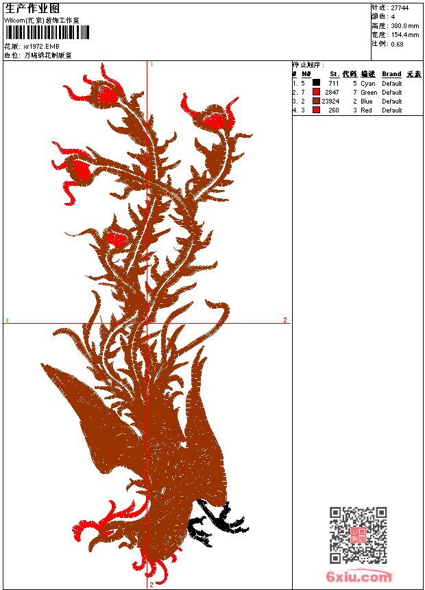 凤凰 点此上传花版兑乐绣币/现金 emb花版参数: 大小:139.50 KB / 尺寸:154*380[毫米] / 针数:27744针 / 线色:4 / 格式:emb / 版本:9 版带文件需绣花软件方可打开,可配色打印导出各种格式或直接上机绣。如无绣花软件可下载1:1模拟效果图。 PNG图片信息:大小:0.7(MB) /图宽*高:584x1438(像素) emb下载 1:1图下载 关闭 相似花版: 龙 龙 靓花 虎头 龙 鹰 龙 老虎 鹤 鹤 猫头鹰 靓花 凤凰 鸟 龙 鸟 龙 龙 龙 鸟 上一个花样:龙 下一个花样:龙