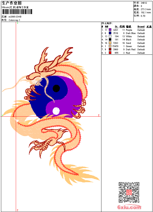 龙 点此上传花版兑乐绣币/现金 emb花版参数: 大小:156.50 KB / 尺寸:192*273[毫米] / 针数:34812针 / 线色:8 / 格式:emb / 版本:9 版带文件需绣花软件方可打开,可配色打印导出各种格式或直接上机绣。如无绣花软件可下载1:1模拟效果图。 PNG图片信息:大小:0.8(MB) /图宽*高:727x1034(像素) emb下载 1:1图下载 关闭 相似花版: 中国风 童子 龙 狗 狮子 公鸡 鹰 母鸡 鸟 靓花 鸟 靓花 靓花 徽章标志 龙 龙 靓花 靓花 荷花 荷花 龙 靓花 上一个花样:鸟 下一个花样:中国风 童子