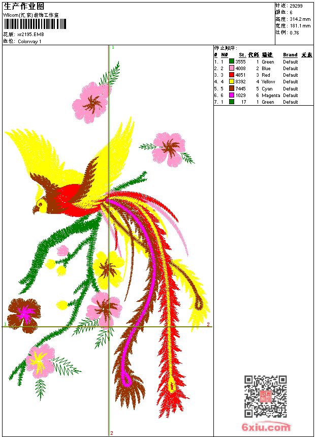 凤凰 点此上传花版兑乐绣币/现金 emb花版参数: 大小:153.50 KB / 尺寸:181*314[毫米] / 针数:29299针 / 线色:6 / 格式:emb / 版本:9 版带文件需绣花软件方可打开,可配色打印导出各种格式或直接上机绣。如无绣花软件可下载1:1模拟效果图。 PNG图片信息:大小:0.7(MB) /图宽*高:686x1189(像素) emb下载 1:1图下载 关闭 相似花版: 鸟 靓花 鸟 靓花 龙 靓花 鲤鱼 靓花 鸟 靓花 水仙花 脸谱 脸谱 脸谱 脸谱 龙 狮标 龙 猫 鸟 靓花 鸟 上一个花样:龙 下一个花样:鸟 靓花