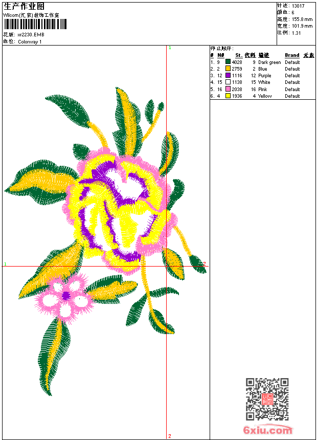 靓花 点此上传花版兑乐绣币/现金 emb花版参数: 大小:72.50 KB / 尺寸:102*156[毫米] / 针数:13017针 / 线色:6 / 格式:emb / 版本:9 版带文件需绣花软件方可打开,可配色打印导出各种格式或直接上机绣。如无绣花软件可下载1:1模拟效果图。 PNG图片信息:大小:0.2(MB) /图宽*高:386x590(像素) emb下载 1:1图下载 关闭 相似花版: 凤凰 鹰 鹰 鹰 凤凰 豹 凤凰 龙 鹰 龙 龙 龙 鸟 靓花 鸟 靓花 凤凰 龙 龙 龙 龙 龙 上一个花样:靓花 下一个花样:凤凰