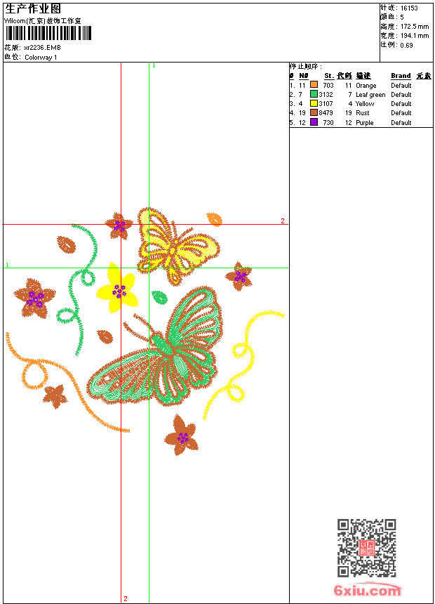 蝴蝶 点此上传花版兑乐绣币/现金 emb花版参数: 大小:149.00 KB / 尺寸:194*172[毫米] / 针数:16153针 / 线色:5 / 格式:emb / 版本:9 版带文件需绣花软件方可打开,可配色打印导出各种格式或直接上机绣。如无绣花软件可下载1:1模拟效果图。 PNG图片信息:大小:0.4(MB) /图宽*高:735x653(像素) emb下载 1:1图下载 关闭 相似花版: 凤凰 靓花 靓花 靓花 靓花 靓花 凤凰 鹰 鹰 鹰 凤凰 豹 凤凰 龙 鹰 龙 龙 龙 鸟 靓花 鸟 靓花 上一个花样:靓花 下一个花样:凤凰