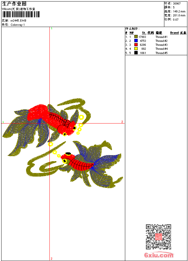 金鱼 点此上传花版兑乐绣币/现金 emb花版参数: 大小:85.00 KB / 尺寸:201*149[毫米] / 针数:30967针 / 线色:5 / 格式:emb / 版本:9 版带文件需绣花软件方可打开,可配色打印导出各种格式或直接上机绣。如无绣花软件可下载1:1模拟效果图。 PNG图片信息:大小:0.5(MB) /图宽*高:761x565(像素) emb下载 1:1图下载 关闭 相似花版: 瓢虫 斑马 猫头鹰 鹰 鸟 靓花 龙 梅花 靓花 孔雀 龙 靓花 凤凰 熊猫 老鹰 靓花 靓花 孔雀 老虎 鹤 凤凰 上一个花样:龙 下一个花样:瓢虫