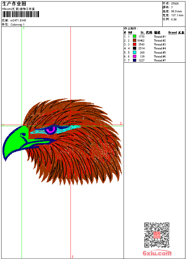 鹰 点此上传花版兑乐绣币/现金 emb花版参数: 大小:83.00 KB / 尺寸:137*100[毫米] / 针数:25926针 / 线色:7 / 格式:emb / 版本:9 版带文件需绣花软件方可打开,可配色打印导出各种格式或直接上机绣。如无绣花软件可下载1:1模拟效果图。 PNG图片信息:大小:0.3(MB) /图宽*高:519x378(像素) emb下载 1:1图下载 关闭 相似花版: 鲤鱼 龙 荷花 鸟 柳树 龙 靓花 金鱼 龙 荷花 鸳鸯 鲤鱼 龙 孔雀 靓花 龙 龙 鸭 鸳鸯 美女 剪纸 美女 鲤鱼跃龙门 龙 上一个花样:鹤 下一个花样:鲤鱼