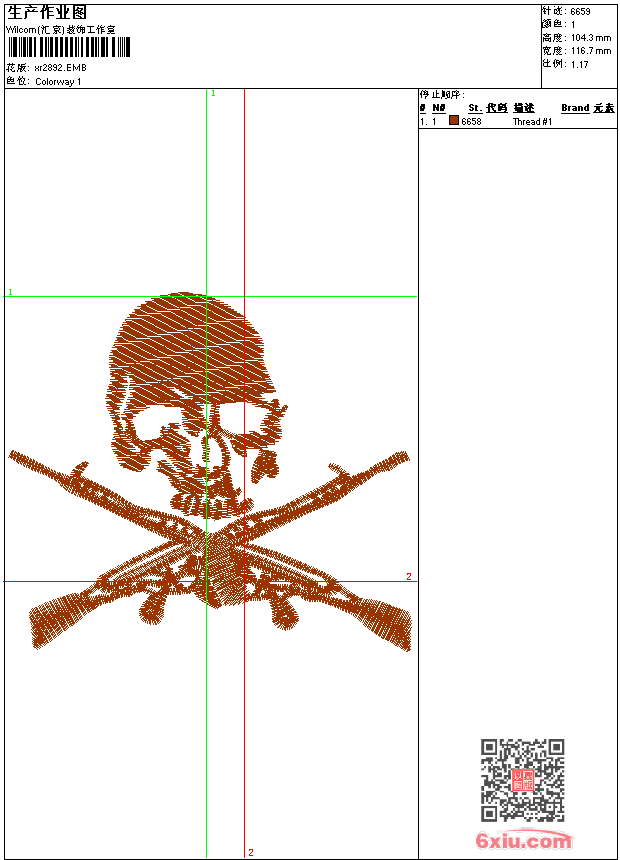 骷髅 步枪 点此上传花版兑乐绣币/现金 emb花版参数: 大小:42.50 KB / 尺寸:117*104[毫米] / 针数:6659针 / 线色:1 / 格式:emb / 版本:9 版带文件需绣花软件方可打开,可配色打印导出各种格式或直接上机绣。如无绣花软件可下载1:1模拟效果图。 PNG图片信息:大小:0.1(MB) /图宽*高:442x395(像素) emb下载 1:1图下载 关闭 相似花版: 蝎子 凤凰 龙 龙 孔雀 凤凰 龙 凤凰 狮子狗 老虎 龙 荷花 靓花 靓花 鹰 叶子 抽象 线条 龙 龙 凤凰 上一个花样:龙 下一个花样:蝎子