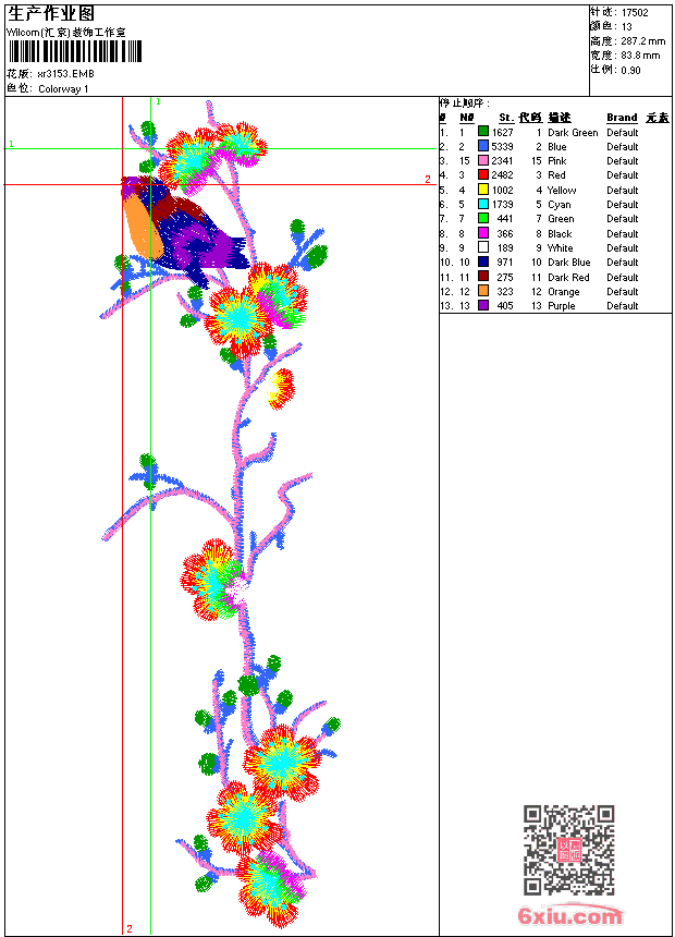 靓花 点此上传花版兑乐绣币/现金 emb花版参数: 大小:133.50 KB / 尺寸:84*287[毫米] / 针数:17502针 / 线色:13 / 格式:emb / 版本:9 版带文件需绣花软件方可打开,可配色打印导出各种格式或直接上机绣。如无绣花软件可下载1:1模拟效果图。 PNG图片信息:大小:0.3(MB) /图宽*高:317x1087(像素) emb下载 1:1图下载 关闭 相似花版: 靓花 靓花 靓花 鸟 鸟 鸟 鸟 鸟 鸟 猫头鹰 猫头鹰 鹰标 鲤鱼 荷花 荷花 百子图 人物 童子 菠萝 鸟 龙 鸟 上一个花样:靓花 下一个花样:靓花