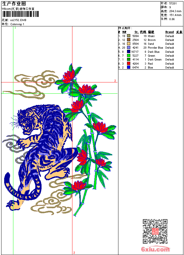 - 版带文件需绣花软件方可打开,可配色打印导出各种格式或直接上机绣。如无绣花软件可下载1:1模拟效果图。
