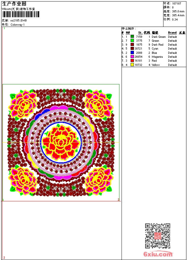 - emb花版参数: 大小:460.00 KB / 尺寸:385*385[毫米] / 针数:107187针 / 线色:8 / 格式:emb / 版本:9