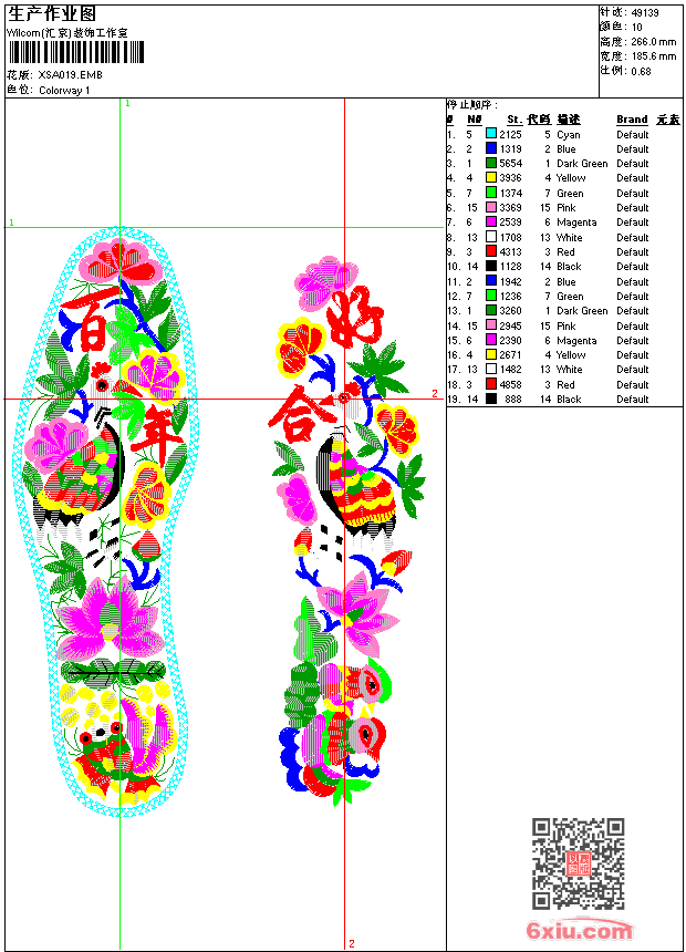 鞋垫 点此上传花版兑乐绣币/现金 emb花版参数: 大小:274.00 KB / 尺寸:186*266[毫米] / 针数:49172针 / 线色:10 / 格式:emb / 版本:9 版带文件需绣花软件方可打开,可配色打印导出各种格式或直接上机绣。如无绣花软件可下载1:1模拟效果图。 PNG图片信息:大小:0.7(MB) /图宽*高:703x1007(像素) emb下载 1:1图下载 关闭 相似花版: 鞋垫 鞋垫 鞋垫 鞋垫 鞋垫 鞋垫 鞋垫 鞋垫 鞋垫 鞋垫 鞋垫 鞋垫 鞋垫 鞋垫 鞋垫 鞋垫 鞋垫 鞋垫 民族包 靓花 民族包 靓花 上一个花样:鞋垫 下一个花样:鞋垫