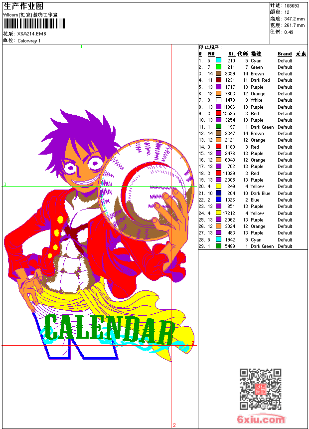 卡通 海贼王 点此上传花版兑乐绣币/现金 emb花版参数: 大小:306.00 KB / 尺寸:262*347[毫米] / 针数:108693针 / 线色:12 / 格式:emb / 版本:9 版带文件需绣花软件方可打开,可配色打印导出各种格式或直接上机绣。如无绣花软件可下载1:1模拟效果图。 PNG图片信息:大小:1.6(MB) /图宽*高:991x1314(像素) emb下载 1:1图下载 关闭 相似花版: 卡通 蓝精灵 珠片 珠片 凤凰 靓花 靓花鸟 龙 靓花牡丹花 靓花牡丹花 老虎 靓花牡丹花 龙 鹤松 福禄寿全 蛇 美女 孔雀 宇宙 卡通 章 孔雀 猫头 靓花牡丹花 喜洋洋 卡通 链目绣 孔雀 绳绣 珠片 靓花 上一个花样:龙凤 下一个花样:卡通 蓝精灵 珠片