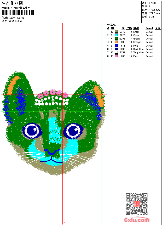 猫头 点此上传花版兑乐绣币/现金 emb花版参数: 大小:133.50 KB / 尺寸:172*172[毫米] / 针数:27640针 / 线色:8 / 格式:emb / 版本:9 版带文件需绣花软件方可打开,可配色打印导出各种格式或直接上机绣。如无绣花软件可下载1:1模拟效果图。 PNG图片信息:大小:0.7(MB) /图宽*高:649x653(像素) emb下载 1:1图下载 关闭 相似花版: 靓花 靓花 老虎 卡通 蝴蝶 蝴蝶 龙 猫狗 靓花 凤凰 虎 靓花 鸟 竹子 汉服 靓花 靓花 龙 靓花 蝴蝶 猫头 靓花 龙 上一个花样:小猫 下一个花样:靓花