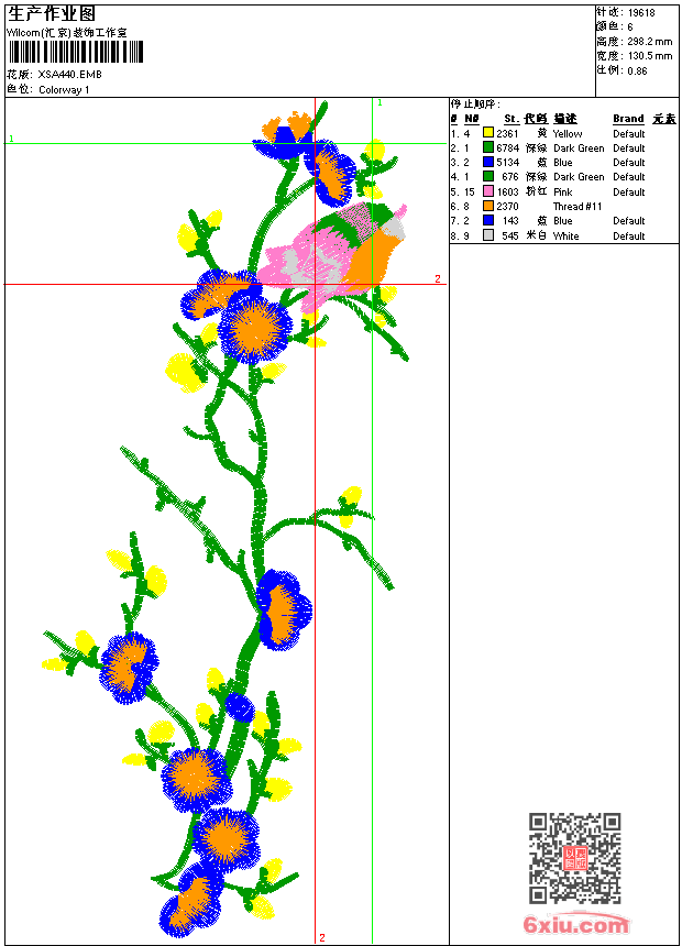 靓花 点此上传花版兑乐绣币/现金 emb花版参数: 大小:124.00 KB / 尺寸:130*298[毫米] / 针数:19618针 / 线色:6 / 格式:emb / 版本:9 版带文件需绣花软件方可打开,可配色打印导出各种格式或直接上机绣。如无绣花软件可下载1:1模拟效果图。 PNG图片信息:大小:0.3(MB) /图宽*高:494x1129(像素) emb下载 1:1图下载 关闭 相似花版: 蝴蝶 蝴蝶 靓花 蝴蝶 蝴蝶 龙 蝴蝶 梅花鸟 蝴蝶 虎鸟长颈鹿卡通动物 猫头 抱枕 卡通 表情包 猫头 绳绣 凤凰 虎头 靓花 蝴蝶 老虎 卡通 老虎 卡通 上一个花样:蝴蝶 下一个花样:蝴蝶