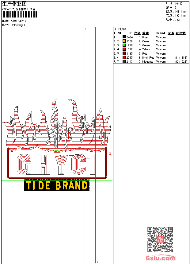 火焰 珠片 点此上传花版兑乐绣币/现金 emb花版参数: 大小:113.00 KB / 尺寸:198*169[毫米] / 针数:10437针 / 线色:7 / 格式:emb / 版本:e2 版带文件需绣花软件方可打开,可配色打印导出各种格式或直接上机绣。如无绣花软件可下载1:1模拟效果图。 PNG图片信息:大小:0.4(MB) /图宽*高:749x639(像素) emb下载 1:1图下载 关闭 相似花版: 鹰 鸟 珠片 米奇 珠片 豹 珠片 企鹅 多色珠片 鹰 鸟 唐老鸭 多色珠片 兔 心形 多色珠片 水果 香蕉 苹果 西瓜 多色珠片 马 珠片 字母 go to hell 珠片 字母 dont stop now me 珠片 字母 bitch 珠片 范思哲 珠片 logo 凤凰 猫头鹰 珠片 上一个花样:超人 logo 珠片 下一个花样:鹰 鸟 珠片