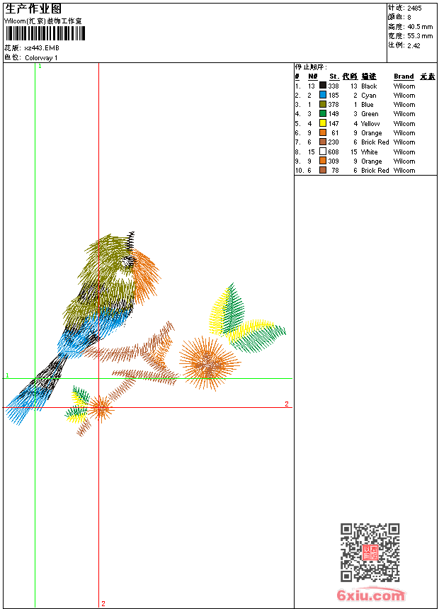 鸟 点此上传花版兑乐绣币/现金 emb花版参数: 大小:54.00 KB / 尺寸:55*40[毫米] / 针数:2485针 / 线色:8 / 格式:emb / 版本:e2 版带文件需绣花软件方可打开,可配色打印导出各种格式或直接上机绣。如无绣花软件可下载1:1模拟效果图。 PNG图片信息:大小:0.1(MB) /图宽*高:210x154(像素) emb下载 1:1图下载 关闭 相似花版: 花朵 虎 鹿 斑马 丹顶鹤 花朵 花朵 装饰 花纹 抽象 虎 牡丹花 老虎 虎 牡丹花 老虎 鸟 人物 美女吹萧 精品 梅花 梅兰竹菊 精品 龙 鱼 金鱼 龙 狮标 finland 花条 鸟 鸟 花朵 龙 鸟 上一个花样:虎头 下一个花样:花朵