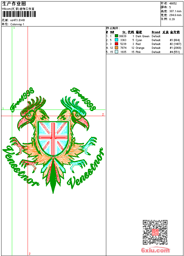 鹰 章标 珠片 点此上传花版兑乐绣币/现金 emb花版参数: 大小:765.50 KB / 尺寸:295*307[毫米] / 针数:49052针 / 线色:5 / 格式:emb / 版本:e2 版带文件需绣花软件方可打开,可配色打印导出各种格式或直接上机绣。如无绣花软件可下载1:1模拟效果图。 PNG图片信息:大小:1.1(MB) /图宽*高:1115x1162(像素) emb下载 1:1图下载 关闭 相似花版: 领花 玫瑰花 珠片 嘴唇 鹰 珠片 裙摆 猫头鹰 狗 鸟 鸟 玫瑰花 裙摆 裙摆花 十字绣 条码 抽象 外星生物 异形 抽象 外星生物 异形 鱼 鲤鱼 鱼 鲤鱼 鹿 多色珠片 花朵 花朵 熊标 上一个花样:树枝 下一个花样:领花
