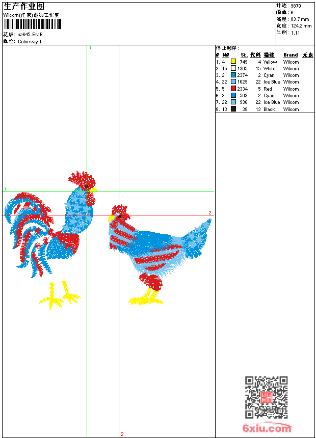 鸡 公鸡 点此上传花版兑乐绣币/现金 emb花版参数: 大小:86.50 KB / 尺寸:124*84[毫米] / 针数:9870针 / 线色:6 / 格式:emb / 版本:e2 版带文件需绣花软件方可打开,可配色打印导出各种格式或直接上机绣。如无绣花软件可下载1:1模拟效果图。 PNG图片信息:大小:0.1(MB) /图宽*高:470x317(像素) emb下载 1:1图下载 关闭 相似花版: 鱼 鲤鱼 熊猫 珠片 虎头 抽象 复杂 线条 凤凰 鸟 蜻蜓 童花 虎头 花朵 骷髅 字母 多色珠片 十字绣条码 十字绣条码 简单花 狮头 多色珠片 鹦鹉 鸟 多色珠片 鸟 多色珠片 心形 多色珠片 旗 米字旗 多色珠片 上一个花样:鹰 标 多色珠片 下一个花样:鱼 鲤鱼