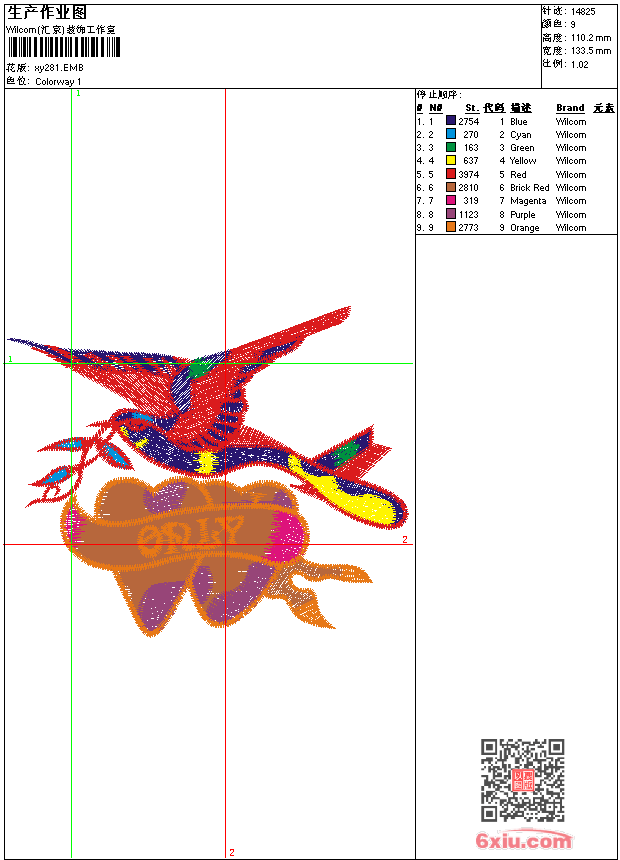 鸟 点此上传花版兑乐绣币/现金 emb花版参数: 大小:85.00 KB / 尺寸:134*110[毫米] / 针数:14825针 / 线色:9 / 格式:emb / 版本:9 版带文件需绣花软件方可打开,可配色打印导出各种格式或直接上机绣。如无绣花软件可下载1:1模拟效果图。 PNG图片信息:大小:0.2(MB) /图宽*高:505x417(像素) emb下载 1:1图下载 关闭 相似花版: 蛇 玫瑰花 虎 老虎 鸟 摩托车 翅膀 骷髅 章标 狗 骑马 logo polo 翅膀 抽象 古典 曲线 靓花 鹰 抽象 古典 曲线 福 鱼 中国风 字 双喜 中国风 荷花 虎头 龙 脸谱 京剧 上一个花样:翅膀 下一个花样:蛇 玫瑰花