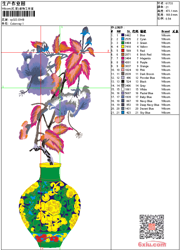 靓花 花瓶 精品 点此上传花版兑乐绣币/现金 emb花版参数: 大小:324.50 KB / 尺寸:168*473[毫米] / 针数:61733针 / 线色:21 / 格式:emb / 版本:9 版带文件需绣花软件方可打开,可配色打印导出各种格式或直接上机绣。如无绣花软件可下载1:1模拟效果图。 PNG图片信息:大小:1.3(MB) /图宽*高:636x1790(像素) emb下载 1:1图下载 关闭 相似花版: 靓花 花瓶 精品 靓花 花瓶 精品 风景 山峰 山水画 靓花 鸟 树枝 靓花 靓花 靓花 靓花 荷花 鱼 荷花 马 章标 羽毛 尾巴 斑马 蝴蝶 狮标 翅膀 鱼 狮标 上一个花样:靓花 花瓶 精品 下一个花样:靓花 花瓶 精品