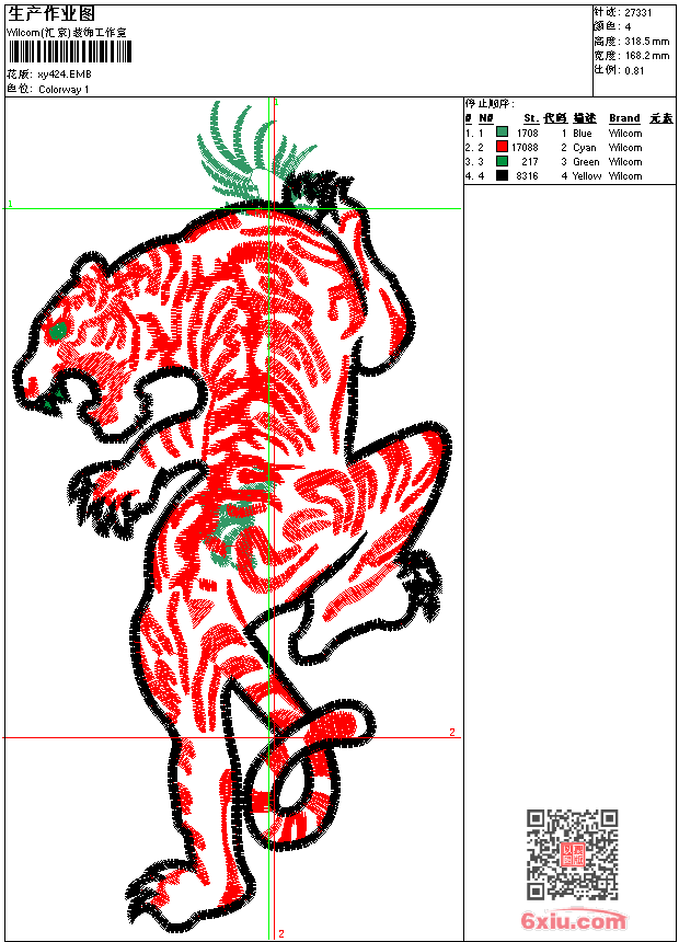 虎 老虎 点此上传花版兑乐绣币/现金 emb花版参数: 大小:120.50 KB / 尺寸:168*319[毫米] / 针数:27331针 / 线色:4 / 格式:emb / 版本:9 版带文件需绣花软件方可打开,可配色打印导出各种格式或直接上机绣。如无绣花软件可下载1:1模拟效果图。 PNG图片信息:大小:0.6(MB) /图宽*高:637x1205(像素) emb下载 1:1图下载 关闭 相似花版: 兔子 鸟 花 鸟花 狮标 凤凰 鸡 古典 花 马 飞马 荷花 鹰标 龙标 鹰标 骷髅 凤凰 人物 印第安人 马 飞马 范思哲 logo 鹰 鹰标 上一个花样:蝴蝶花 下一个花样:兔子
