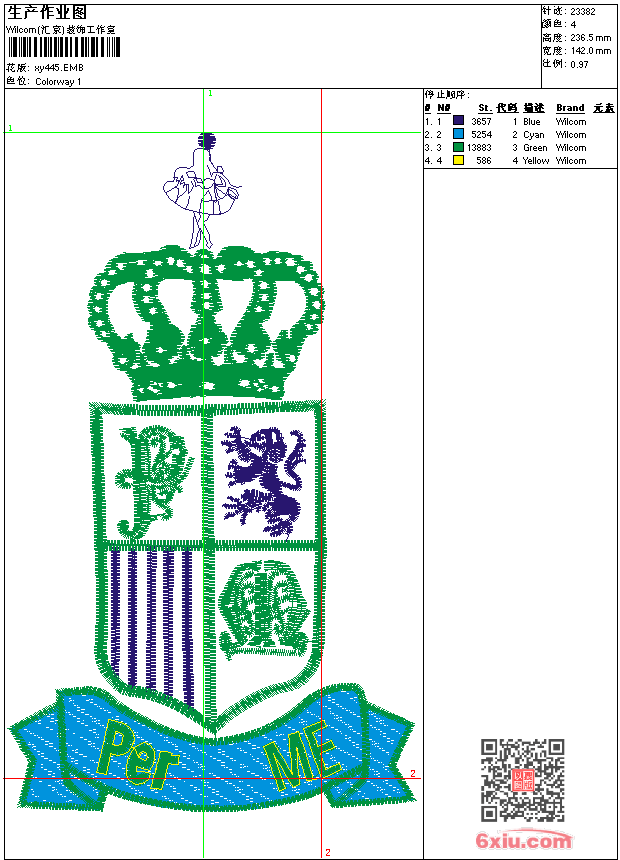 章仔 点此上传花版兑乐绣币/现金 emb花版参数: 大小:93.50 KB / 尺寸:142*237[毫米] / 针数:23382针 / 线色:4 / 格式:emb / 版本:9 版带文件需绣花软件方可打开,可配色打印导出各种格式或直接上机绣。如无绣花软件可下载1:1模拟效果图。 PNG图片信息:大小:0.4(MB) /图宽*高:538x895(像素) emb下载 1:1图下载 关闭 相似花版: 猫 狮标 章 虎头 凤凰 马 狮标 马 骑马 Burberry logo 狮标 印第安人章标 鹰 狮标 骷髅 牛 鹰 鱼 金鱼 鱼 金鱼 蝴蝶花 虎 老虎 上一个花样:骑马 polo 下一个花样:猫