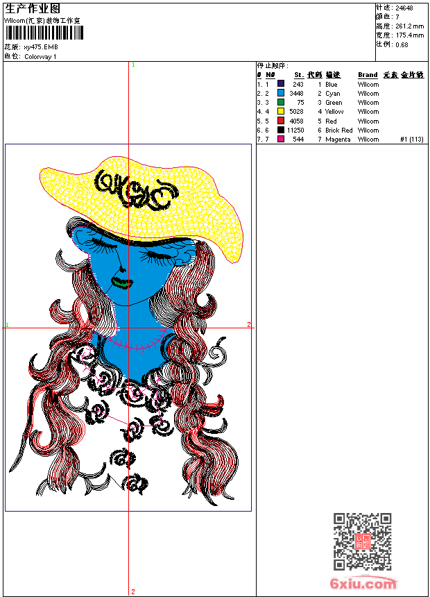 美女 点此上传花版兑乐绣币/现金 emb花版参数: 大小:80.00 KB / 尺寸:175*261[毫米] / 针数:24649针 / 线色:7 / 格式:emb / 版本:9 版带文件需绣花软件方可打开,可配色打印导出各种格式或直接上机绣。如无绣花软件可下载1:1模拟效果图。 PNG图片信息:大小:0.7(MB) /图宽*高:664x988(像素) emb下载 1:1图下载 关闭 相似花版: 熊猫 毛巾绣 鸟 鱼 抽象 吉祥 鸟 树枝 鹦鹉 凤凰 龙 美女 虎 天王 龙 蜜蜂 虎 老虎 虎 骷髅 蝎子 骷髅 音乐 马 鸟 树枝 靓花 虎 老虎 龙 狮标 骷髅片 上一个花样:鸟 下一个花样:熊猫 毛巾绣