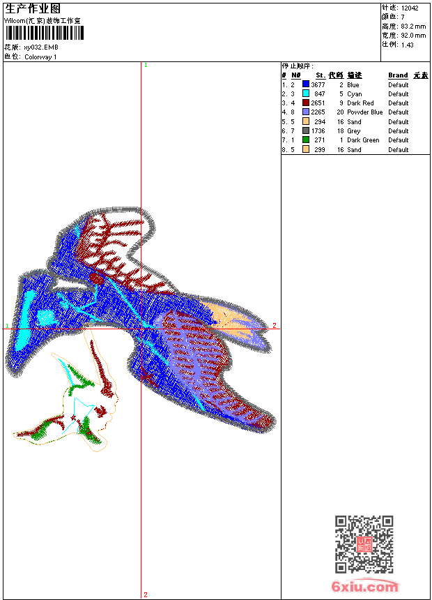 鸟 点此上传花版兑乐绣币/现金 emb花版参数: 大小:84.00 KB / 尺寸:92*83[毫米] / 针数:12041针 / 线色:7 / 格式:emb / 版本:9 版带文件需绣花软件方可打开,可配色打印导出各种格式或直接上机绣。如无绣花软件可下载1:1模拟效果图。 PNG图片信息:大小:0.1(MB) /图宽*高:348x315(像素) emb下载 1:1图下载 关闭 相似花版: 龙 孔雀 靓花 靓花 菊花 中国风 鞭炮 鸟 鱼 金鱼 鸟 鸳鸯 鸟 装饰 几何 抽象 装饰 几何 抽象 装饰 几何 抽象 装饰 几何 抽象 车 单车 靓花 多色珠片 竹子 靓花 靓花 珠片 花朵 上一个花样:靓花 下一个花样:龙