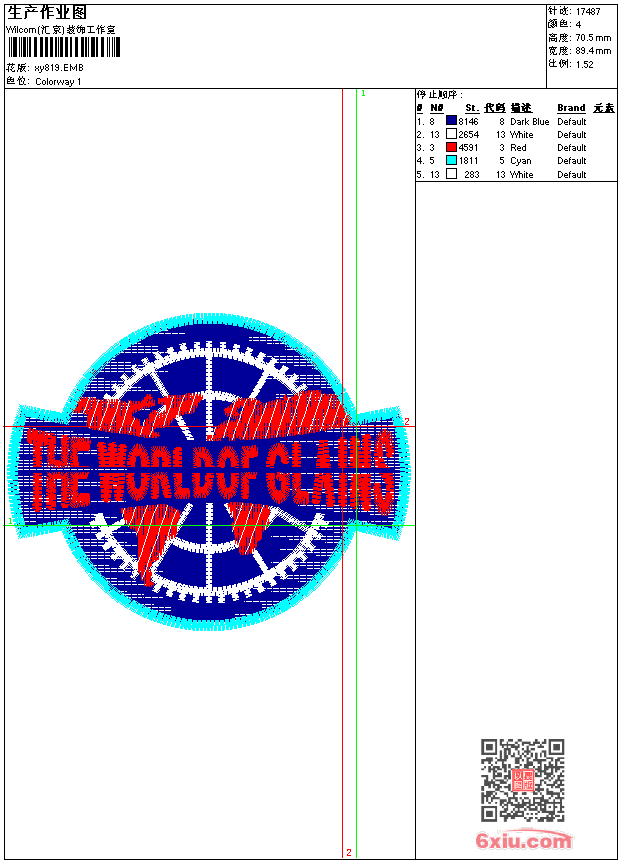 章标 点此上传花版兑乐绣币/现金 emb花版参数: 大小:63.00 KB / 尺寸:89*71[毫米] / 针数:17487针 / 线色:4 / 格式:emb / 版本:9 版带文件需绣花软件方可打开,可配色打印导出各种格式或直接上机绣。如无绣花软件可下载1:1模拟效果图。 PNG图片信息:大小:0.1(MB) /图宽*高:339x267(像素) emb下载 1:1图下载 关闭 相似花版: 人物 卡通 鸟 猫头鹰 猴子 鸟 骷髅 蜜蜂 苍蝇 豹头 狮标章 骷髅 骷髅 骷髅 章仔标 虎标 章仔标 章仔标 章仔标 章标 鹰标 菊花 鸟 牡丹花 上一个花样:国旗 下一个花样:人物 卡通