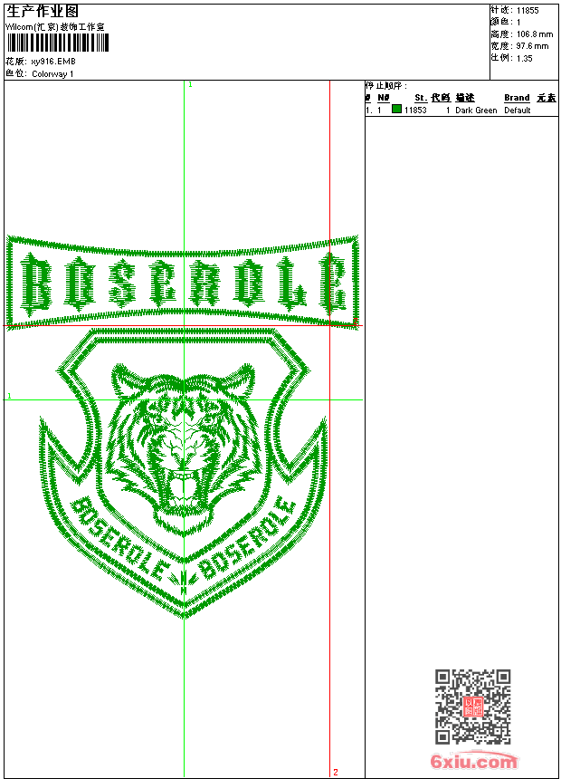 虎头 章仔 点此上传花版兑乐绣币/现金 emb花版参数: 大小:73.00 KB / 尺寸:98*107[毫米] / 针数:11855针 / 线色:1 / 格式:emb / 版本:9 版带文件需绣花软件方可打开,可配色打印导出各种格式或直接上机绣。如无绣花软件可下载1:1模拟效果图。 PNG图片信息:大小:0.1(MB) /图宽*高:370x404(像素) emb下载 1:1图下载 关闭 相似花版: 鹰 虎头 猩猩 章标 豹头 章标 章仔 飞机 章仔 骷髅 蜘蛛 虎头 豹头 虎头 鱼 鲨鱼 骷髅 章仔 狮标 蜜蜂 蜘蛛 狼头 手指 狼头 上一个花样:豹头 下一个花样:鹰