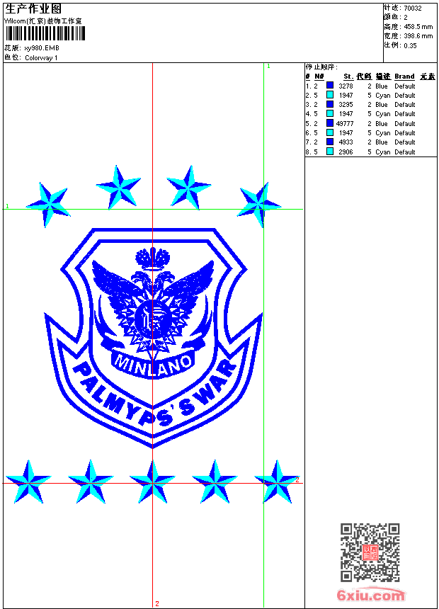 鹰标章 点此上传花版兑乐绣币/现金 emb花版参数: 大小:223.50 KB / 尺寸:399*459[毫米] / 针数:70032针 / 线色:2 / 格式:emb / 版本:9 版带文件需绣花软件方可打开,可配色打印导出各种格式或直接上机绣。如无绣花软件可下载1:1模拟效果图。 PNG图片信息:大小:1.4(MB) /图宽*高:1508x1735(像素) emb下载 1:1图下载 关闭 相似花版: 狮头 鸟 枝 鸟 枝 章仔 蜘蛛 章仔 飞机 骷髅 章仔 章仔 豹头 章仔 飞机 骷髅 章仔 鹰标章 章仔 章仔 自由女神 章仔 豹头 章仔 鸟 鹰 蝙蝠侠 骷髅 章仔 上一个花样:马 骑马 polo 保罗 下一个花样:狮头