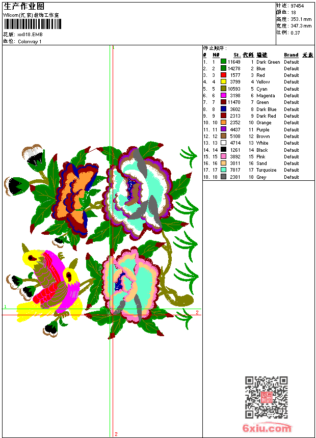 - emb花版参数: 大小:299.50 KB / 尺寸:347*353[毫米] / 针数:97454针 / 线色:18 / 格式:emb / 版本:9
