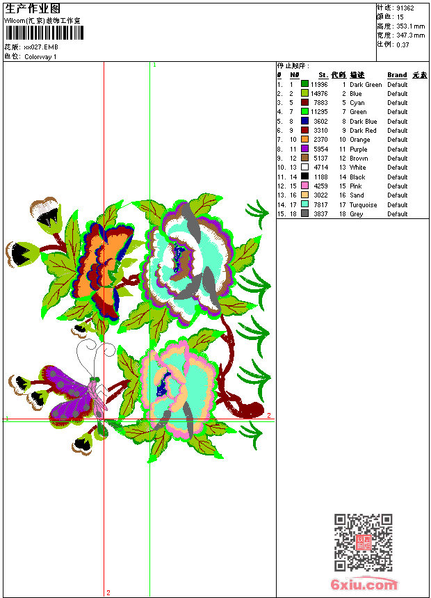 - emb花版参数: 大小:293.00 KB / 尺寸:347*353[毫米] / 针数:91362针 / 线色:15 / 格式:emb / 版本:9