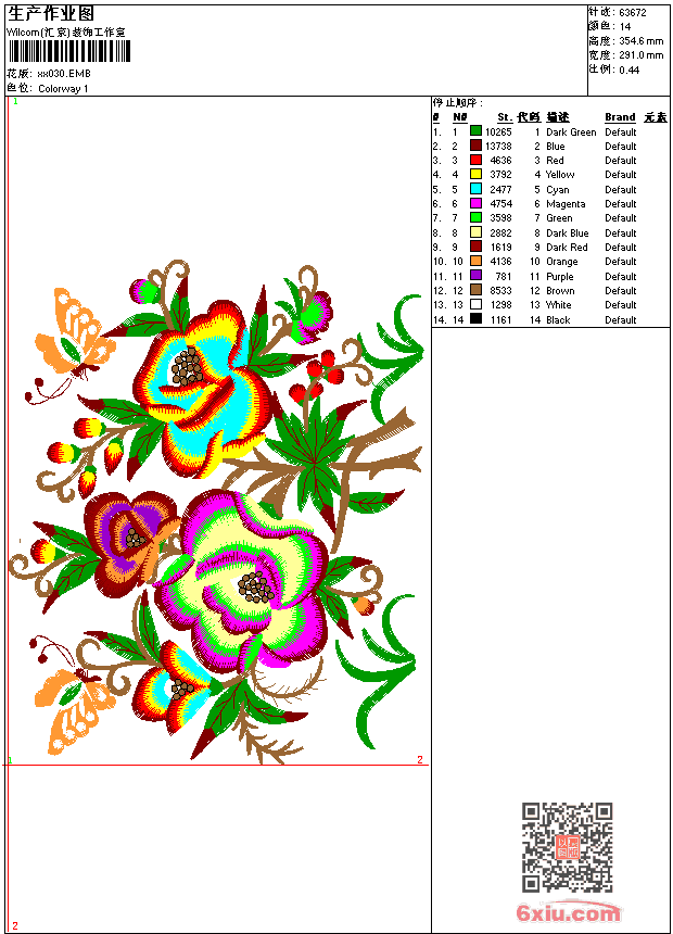 - emb花版参数: 大小:290.50 KB / 尺寸:291*355[毫米] / 针数:63672针 / 线色:14 / 格式:emb / 版本:9