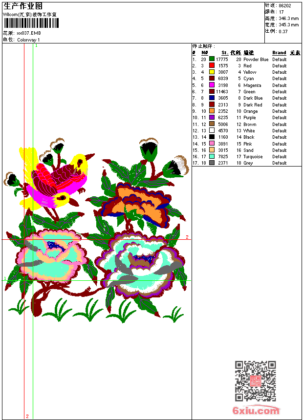 - emb花版参数: 大小:332.00 KB / 尺寸:345*346[毫米] / 针数:86202针 / 线色:17 / 格式:emb / 版本:9